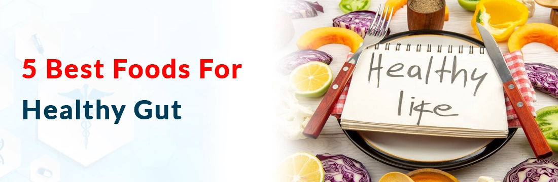 Various foods like Yogurt (Curd), Fermented Foods, Whole Grains, Leafy Greens, Avocado etc. are good for gut health.