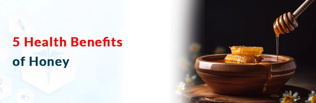 Various benefits of Honey include dietary supplements, boosts immunity, relieving sore throat and chest, helps with digestive issues, is used for wounds and burns etc.