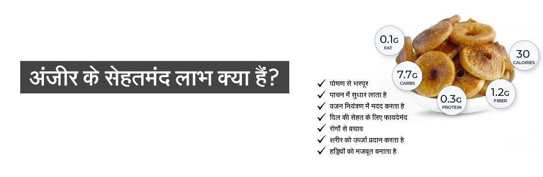 अंजीर को सुपरफूड माना जाता है. अंजीर विभिन्न पोषक तत्वों का समृद्ध स्रोत हैं। अंजीर में फाइबर (Fibers), खनिज (Minerals), विटामिन (Vitamins), आयरन (Iron) और एंटीऑक्सीडेंट (Antioxidants) होते हैं जो हमारे शरीर के अच्छे स्वास्थ्य को बनाए रखने में मदद करते हैं।