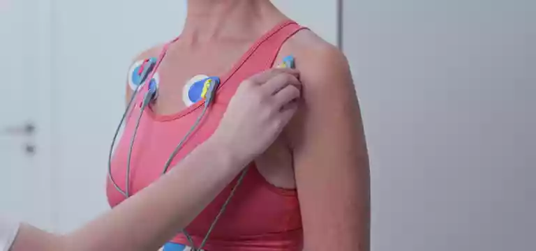 - Placement of electrodes: The technician or healthcare professional will attach several small, sticky electrodes to specific locations on the woman's chest, arms, and legs. These electrodes are connected with the heart which records the heart activity.
