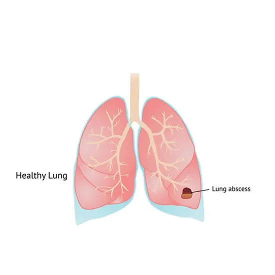 The creation of cavities (more than 2 cm) containing necrotic debris or fluid and liquefaction necrosis of the lung tissue are both symptoms of lung abscess, which are brought on by microbial infection. It can be brought on by aspiration, which can happen when under the influence of drugs or alcohol and typically results in a pus-filled cavity. Moreover, alcohol abuse is the most frequent condition that increases the risk of lung abscesses.