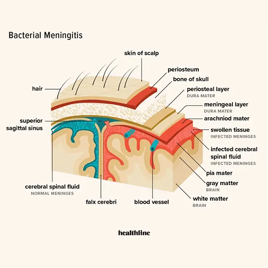 The fluid and three membranes (meninges) that surround your brain and spinal cord become inflamed when you have meningitis. Viral and bacterial infections are the main causes of meningitis. Other potential reasons include...