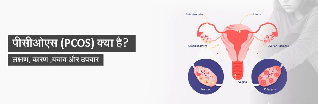 पीसीओएस-PCOS (पॉलीसिस्टिक ओवरी सिंड्रोम- Polycystic Ovary Syndrome) एक प्रकार का हार्मोनल विकार (Hormonal Imbalance) है जो महिलाओं में होता है। इस सिंड्रोम में, महिलाओं के ओवरी (Ovaries) सामान्य स्तर की तुलना में अधिक मात्रा में पुरुष हार्मोन (Male Hormones), जिन्हें एण्ड्रोजन (Androgen) भी कहा जाता है, का असामान्य स्तर उत्पन्न करना शुरू कर देते हैं। यह हार्मोनल असंतुलन ओवरी के असामान्य विकास को प्रभावित कर सकता है जिससे ओवरी से ओवम या अंडे (Ovum or eggs) असामान्य रूप से बाहर निकल सकते हैं। परिणामस्वरूप, आपके अंडाशय में कई सिस्ट (Multiple cyst) बन सकते हैं। आपको मासिक धर्म संबंधी असामान्यताएं (Period related problems), अनियमित ओवुलेशान (Irregular Ovulation), बढ़े हुए अंडाशय (Enlarged Ovary), अनुपस्थित ओवुलेशान(Absent ovulation), वजन बढ़ना (Weight gain) और हाइपरएंड्रोजेनिज्म (Hyperandronism) (अतिरिक्त पुरुष हार्मोन) सहित पीसीओएस (PCOS) के लक्षण हो सकते हैं।