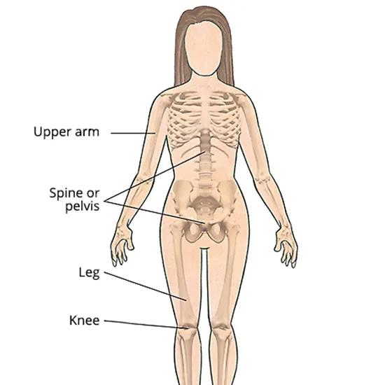 The long bones of your body for example your arms and legs — and the pelvis are commonly influenced.