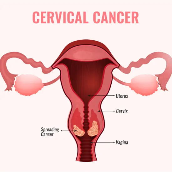 Cervical Cancer develops in the cervix. Cervix is a part of the uterus that connects to the vagina. It is usually caused by human papillomavirus (HPV), common sexual transmitted infection.