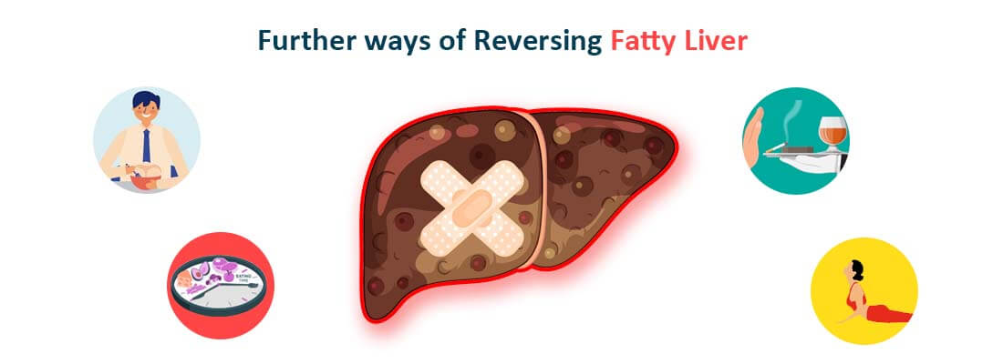 Remove the alcohol from the diet. The amount of the sugar present in your alcoholic drinks can lead to toxicity of the alcohol and this can add the fatty deposits to damaged liver and further worsen the condition.