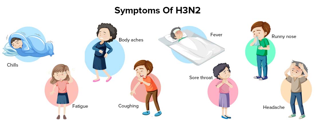 The symptoms of H3N2 are similar to flu or influenza. Its symptoms range from mild to severe and primarily affect the respiratory tract. The symptoms may occur suddenly, which include: