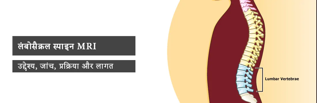 लुम्बोसैक्रल स्पाइन MRI लुम्बोसैक्रल स्पाइन में किसी भी असामान्यता का पता लगाने के लिए डायग्नोस्टिक टूल है। लुम्बोसैक्रल स्पाइन में रीढ़ के निचले हिस्से में छोटी हड्डियाँ (कशेरुक) होती हैं।
