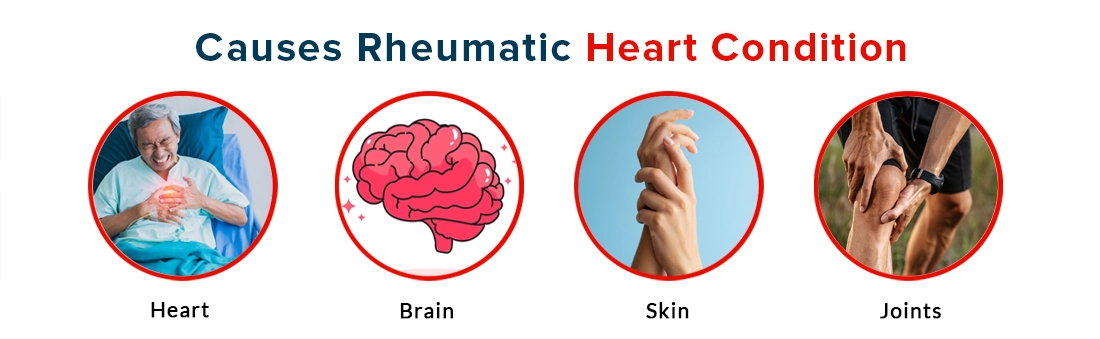 Rheumatic heart disease or rheumatic heart is caused due to rheumatic fever. Repeated and untreated group A streptococcal infections (GAS) can lead to acute rheumatic fever. GAS infection activates autoimmune responses causing inflammation and scarring of the heart valves. The inflammatory disease affects the connective tissue of the heart, joints, skin, or brain. Rheumatic heart valve damage due to strep throat can cause RHD disease.