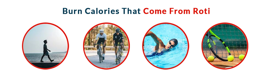 If you want to burn your 5% of total calories consumed through rotis, you can achieve that through various methods like swimming, running, walking, and cycling. Every individual burns different amounts of calories in the same environment and effort. However, we have discussed certain activities and their approximate time to burn 120 calories: