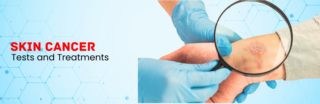 There are various tests used for the diagnosis of skin cancer and these include skin examination, Biopsy, PET CT, MRI etc.