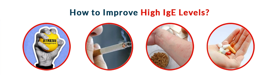 You can improve your IgE level by stress management, using certain medications Avoiding smoke and by improving the air quality etc.