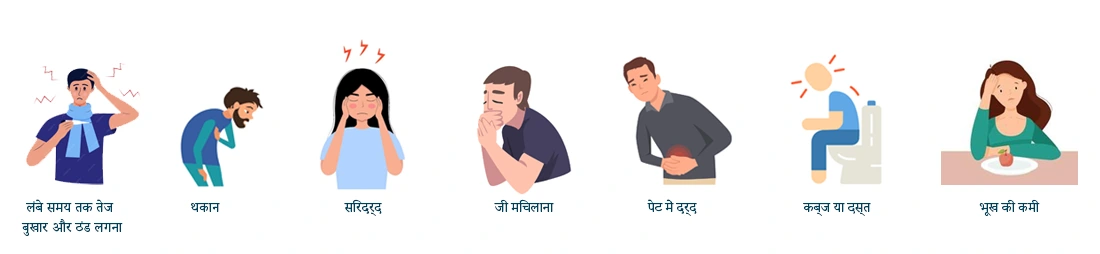 - लंबे समय तक तेज बुखार और ठंड लगना