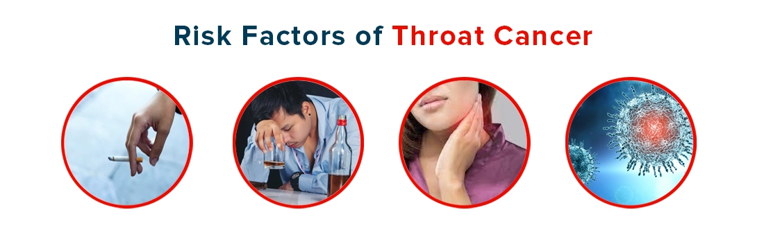 chronic/long time smokers have a greater risk of developing cancer of throat. People who drink too much also can get affected with throat cancer. Consuming alcohol with smoking can further increase the chances of throat cancer. Adults or people more than 50 years of age have a high probability of developing throat cancer.