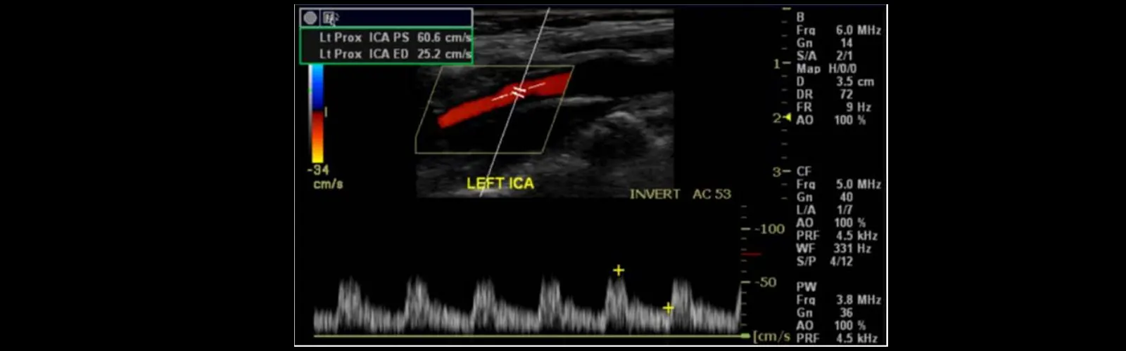 Color Doppler imaging is then used to evaluate the direction and speed of blood flow within the carotid arteries. This information can help to identify any narrowing or blockages in the arteries that can increase the risk of stroke or transient ischemic attack (TIA). The exam can also detect the presence of plaques or other abnormalities in the arterial wall.