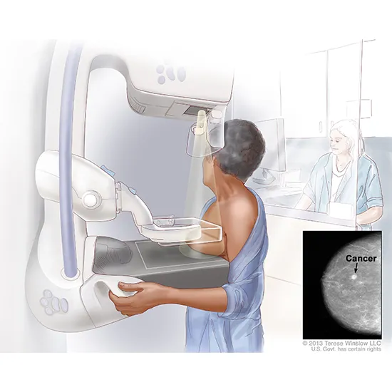 Mammograms are the most commonly used test for screening breast cancer. A diagnostic mammogram is further recommended to the patient if an abnormality is detected on the screening mammogram. Ultrasound for breast cancer is also performed. Ultrasound helps produce images of deep structures in the body for better results.