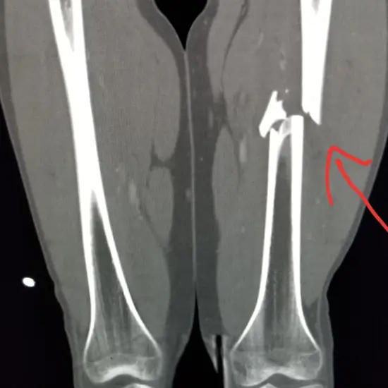 A CT scan can be used with and without contrast for the thigh and aids in finding the cause of pain that can occur due to abscess, broken bone, infection, tumors, and masses. It can also be used in cases of examining the scar tissues after surgery, to diagnose arthritis, difficulty in walking, or swelling.