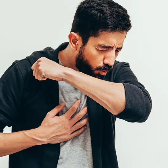 Coughing is a reflex action that helps clear your airways of mucus, irritants, or foreign particles. It can be caused by a variety of factors, including viral or bacterial infections, allergies, or environmental irritants. Symptoms of coughing can include a dry or productive cough, chest tightness or discomfort, and difficulty breathing.