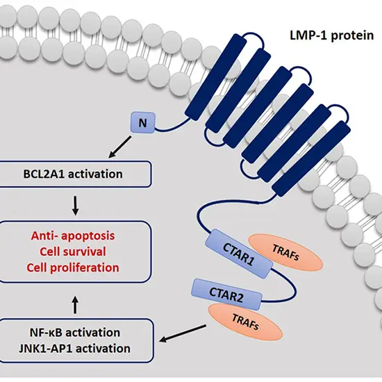The Epstein-Barr virus, also known as Human gamma herpesvirus 4, is one of the nine known human herpesvirus types and one of the most common viruses in humans. EBV is a DNA virus with two strands. It is most famous for being the cause of infectious mononucleosis.