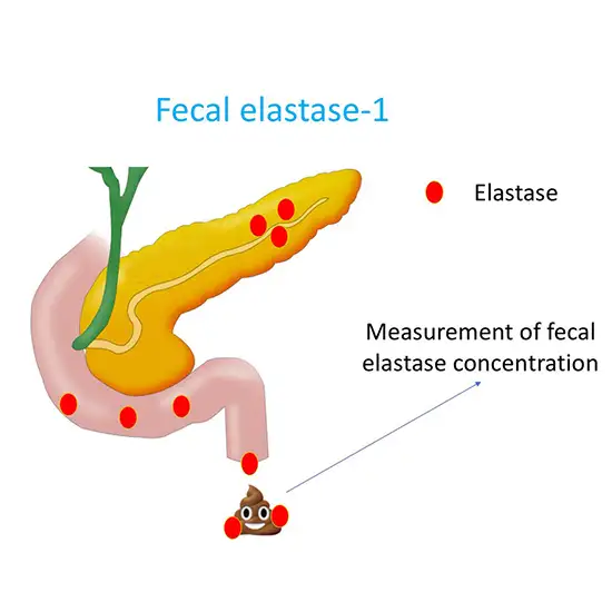 In a healthy person, elastase is passed in the stools; if there is less or no elastase passed in the stool, it indicates that the enzyme is not working correctly. It is referred to as pancreatic insufficiency, leading to various health problems. It includes health diseases that affect the digestion of food, such as malabsorption and malnutrition.