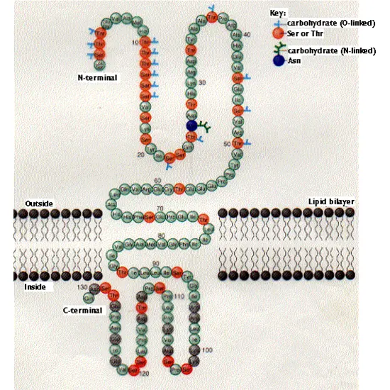 A transmembrane protein called glycophorin-A is found on the surface of healthy human erythrocytes. The amount of glycophorin A in each red blood cell remains constant once it has been expressed to its maximal level. In cases of erythroleukemia, blast cells also contain glycophorin A.