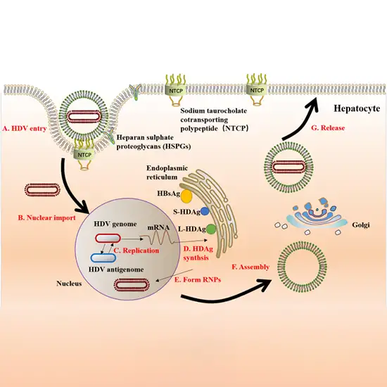 The Hepatitis D virus is a preliminary RNA virus that mandates the helper functionality of Hepatitis B virus (HBV) envelope proteins (HBSAg) to reproduce. The HDV Real-time RT-PCR assays detect HDV RNA-seq in serum or plasma membrane.