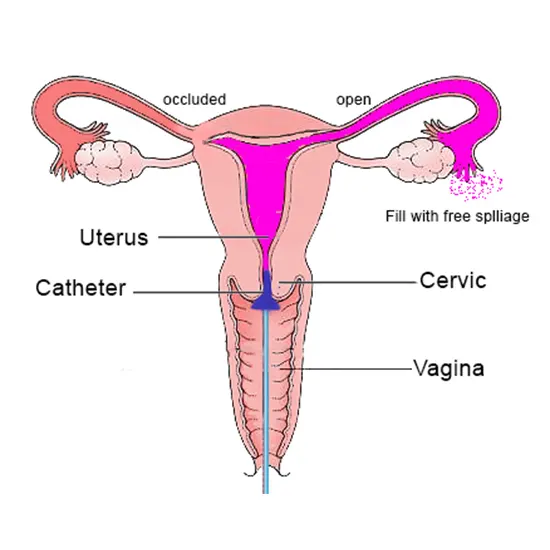 During the procedure, a radiologist or gynaecologist injects a contrast material into the uterus through the cervix, and then takes a series of X-ray images as the contrast material flows through the fallopian tubes and spills into the abdominal cavity. This allows the healthcare provider to evaluate the shape and condition of the uterus and fallopian tubes, and identify any blockages or abnormalities that may be affecting fertility.
