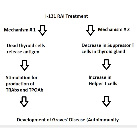 The nuclear medicine technologist gives radioactive iodine in the form of a single capsule or liquid dose. After absorbing into the blood, the thyroid gland concentrates it and it starts the destruction of the thyroid gland cells. Once the cells get destroyed, the thyroid gland diminishes and the level of thyroid hormone becomes normal.