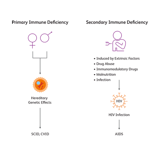 Immune deficiency means the compromised ability of the immune system to fight against the infection that causes infectious diseases compromised. There are both primary and secondary factors that affect the ability of the immune system. Immunodeficiency affects various components such as T cells, B cells, complement system, Neutrophil granulocytes, spleen, etc.