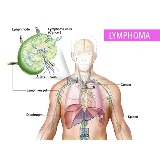 Lymphoma is a type of cancer that affects the lymphatic system, which is a network of vessels and tissues that help to protect the body from infections and diseases. Lymphoma occurs when abnormal lymphocytes, which are a type of white blood cell, grow and multiply uncontrollably. There are two main types of lymphoma: Hodgkin lymphoma and non-Hodgkin lymphoma. Symptoms of lymphoma can include swollen lymph nodes, fatigue, unexplained weight loss, night sweats, and recurrent infections.