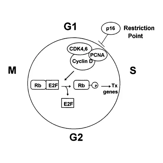 Insufficient or dysfunctional p16 can speed up the cell cycle and cause a variety of cancers if this gene is deleted (the removal of a portion of the DNA sequence during replication).