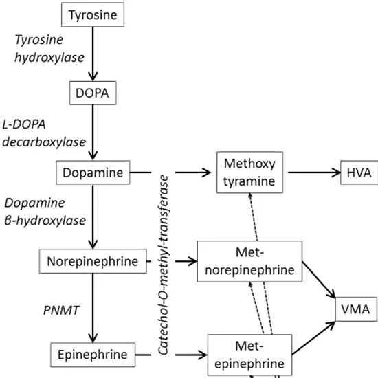 Your body converts catecholamine hormones, which are hormones, into metanephrines. The adrenal glands produce these hormones. Your body responds to stress with the aid of catecholamines. They are referred to be "fight or flight" hormones at times.
