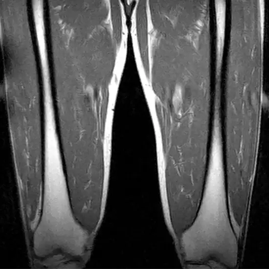 An MRI of the thigh is performed to determine the origin of leg discomfort and thigh bone fractures. This examination reveals abnormal development in the thigh muscles or surrounding soft tissues.
