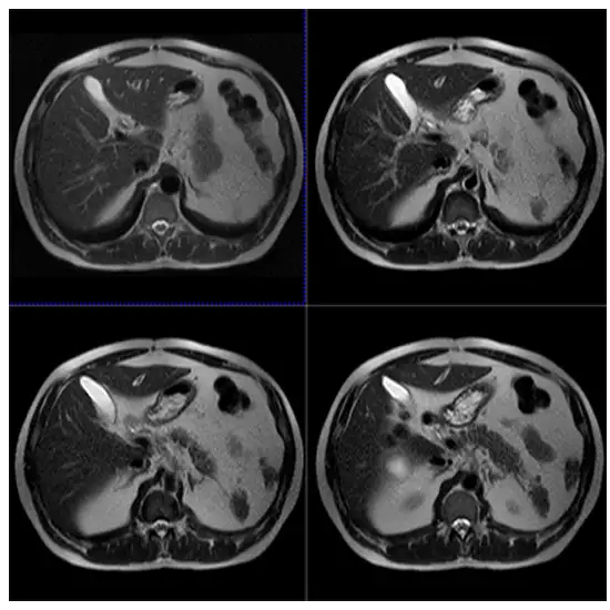 MRI liver scan uses magnetic resonance imaging to produce detailed scan images of the liver and its related structures. The scan images of the liver help in diagnosing diseases of the liver such as liver tumors, blockages in blood vessels of the liver, or cysts of the liver, etc.