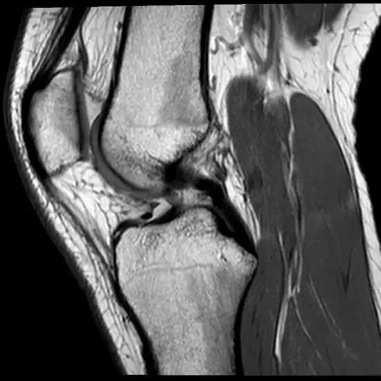 The bones, cartilage, tendons, ligaments, muscles, and blood arteries of the knee joint are visible on an MRI scan. The contrast enhances the MRI's sensitivity and diagnostic accuracy by enhancing the visibility of inside organs.