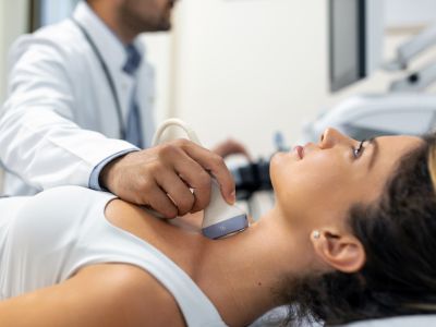 A neck ultrasound can be used to scrutinize the thyroid gland to see nodules, growths, or tumors. An ultrasound of the neck is used to analyze the carotid arteries situated on each side of a patient's neck.