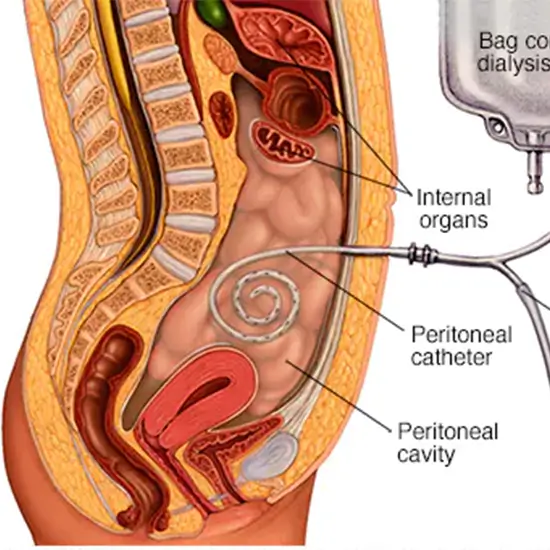 During peritoneal dialysis, a purification liquid flows through a pipe (catheter) into an aspect of your abdomen. The cell lining of your abdomen (peritoneum) works as a filter and withdraws debris products from your blood. After a batch period, the liquid with the filtered debris products drifts out of your stomach and is thrown out.