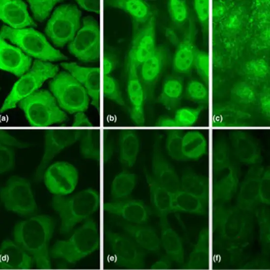 Anti-ribosomal P (anti-Rib-P) antibody is a specific serological marker for systemic lupus erythematosus (SLE) that is routinely tested by targeting a common epitope of three ribosomal proteins (P0, P1, and P2).