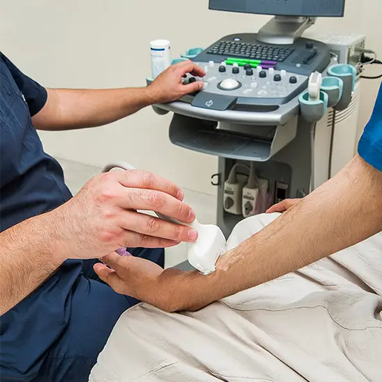 Upper arm ultrasound is a non-invasive imaging diagnostic tool that uses sound waves for the detection of upper arm abnormalities. Upper arm ultrasound is used to show fractures, injuries, blood clots, upper arm diseases etc.