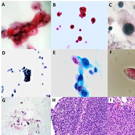 Cytology involves microscopy of bodily cells. In urine cytology, a pathologist examines urine cells to discover if they're healthy. This test can detect both small and large cancers.