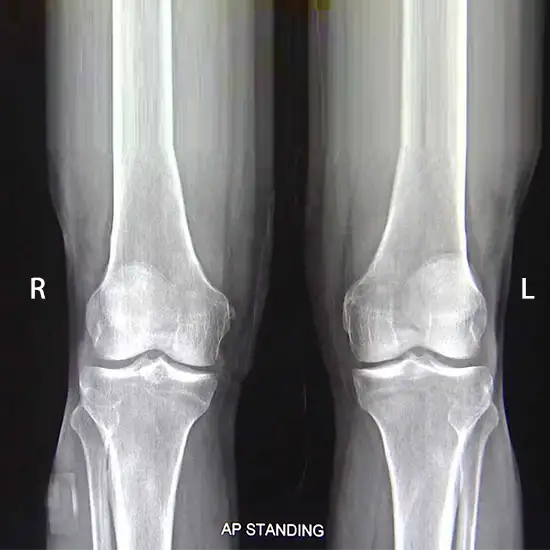 An X-ray of the knee joint is an imaging tool that may evaluate the alignment of the knee joint, the quality of the bone, and the degree to which degenerative changes have occurred inside the knee.