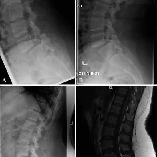 This examination employs X-rays to obtain pictures of the 5-vertebrae lumbar spine. This test is used to determine if the spine is unstable in spondylolisthesis, a condition that causes lower back discomfort. The patient is asked to lean back from the lower back for the extension view.