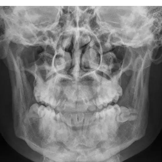 An X-ray of the mandible (right) (AP view) is typically obtained after a traumatic event to confirm a fracture or dislocation. If you've been in an accident and have these symptoms, see a doctor immediately.