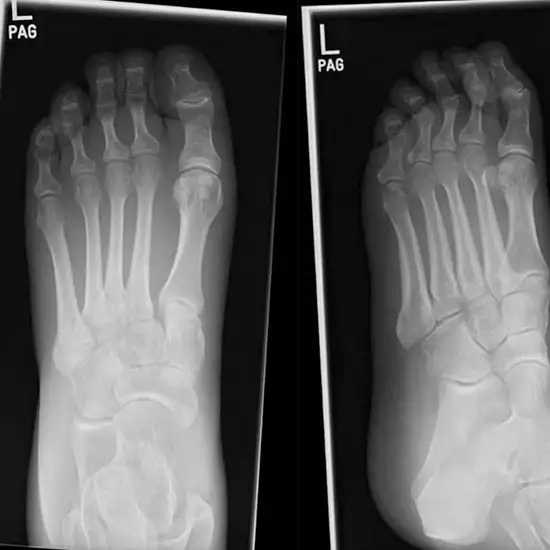 The X-Ray of both feet AP (Anteroposterior) and LAT View is used to see the bones of the feet, including the ankle bones (tarsal bones), the front end of the feet (metatarsal bones), and toes (phalanges), as well as the soft tissues (skin and muscles) around them.